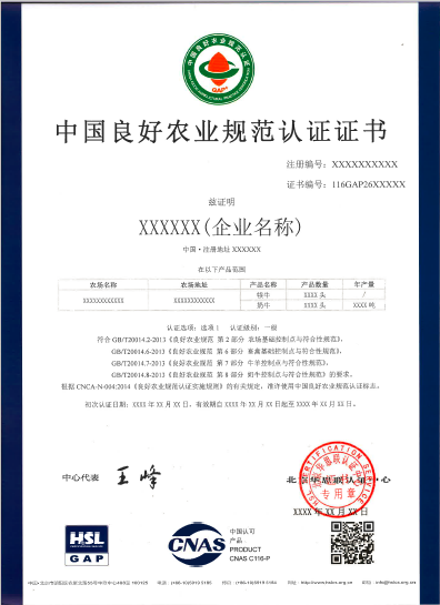 中国良好农业规范认证证书模板