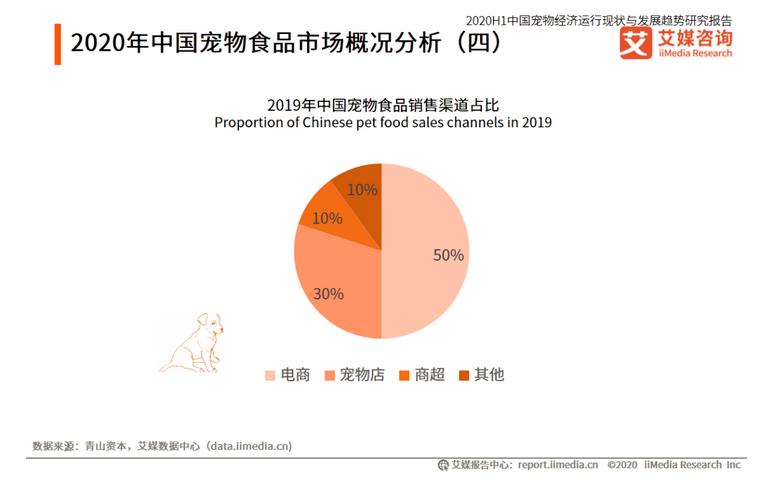 宠物食品方面,中国宠物食品销售渠道以电商渠道及宠物店为主。2019年中国宠物食品销售渠道中,电商占比约50%,宠物店占比约30%,商超渠道约为10%。