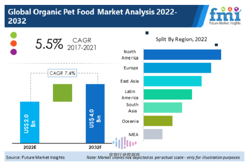 宠物有机食品规则的变动,反映了市场对于健康、高质量宠物食品的需求,随着养宠更加精细化、人性化,有机宠物食品市场将会进一步扩大。据宠物市场研究机构(FMI)近日发布的报告显示,2032年全球有机宠物食品市场总额预计将达40亿美元,2022-2032年实现复合年增长率(CAGR)7.4%。