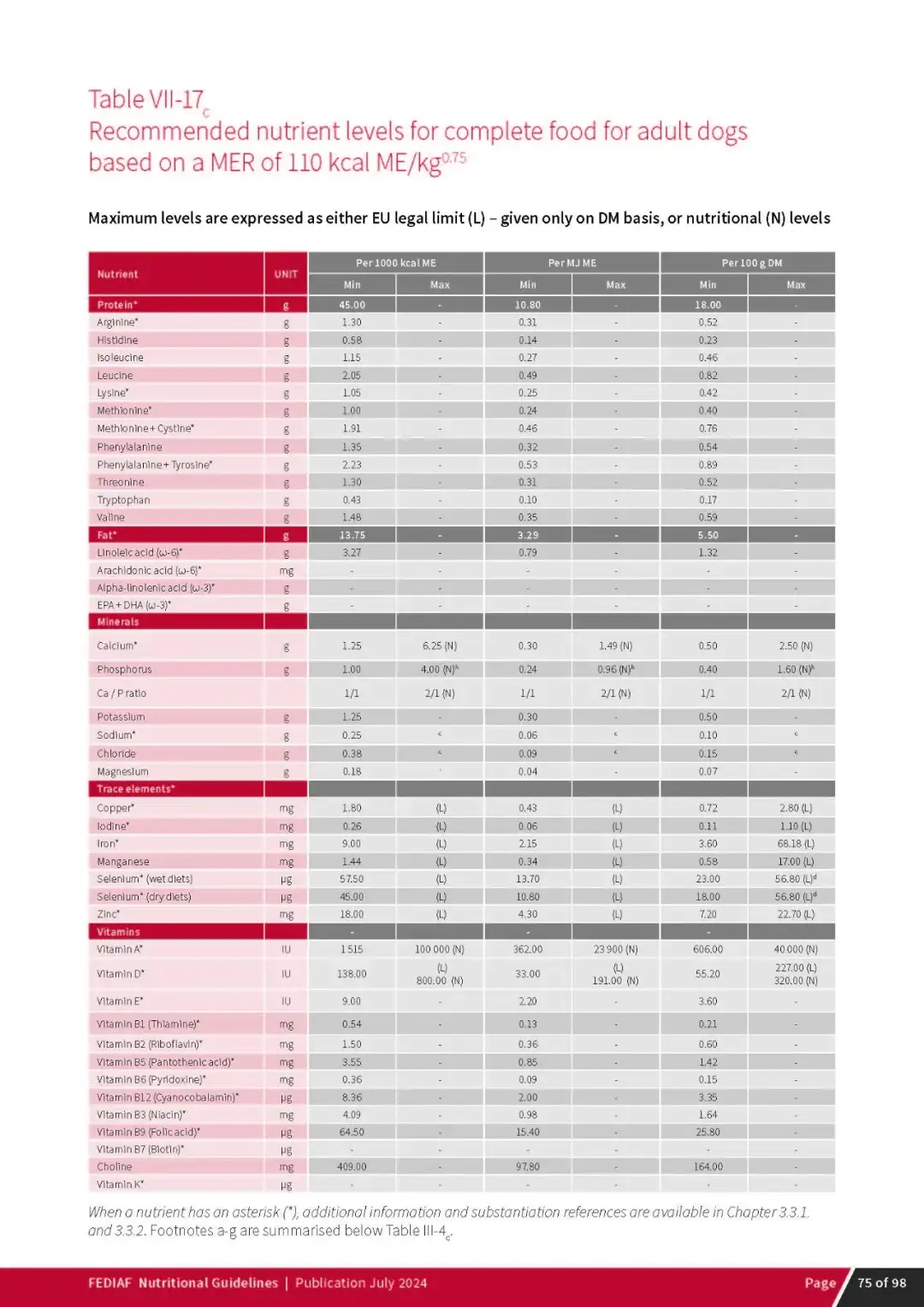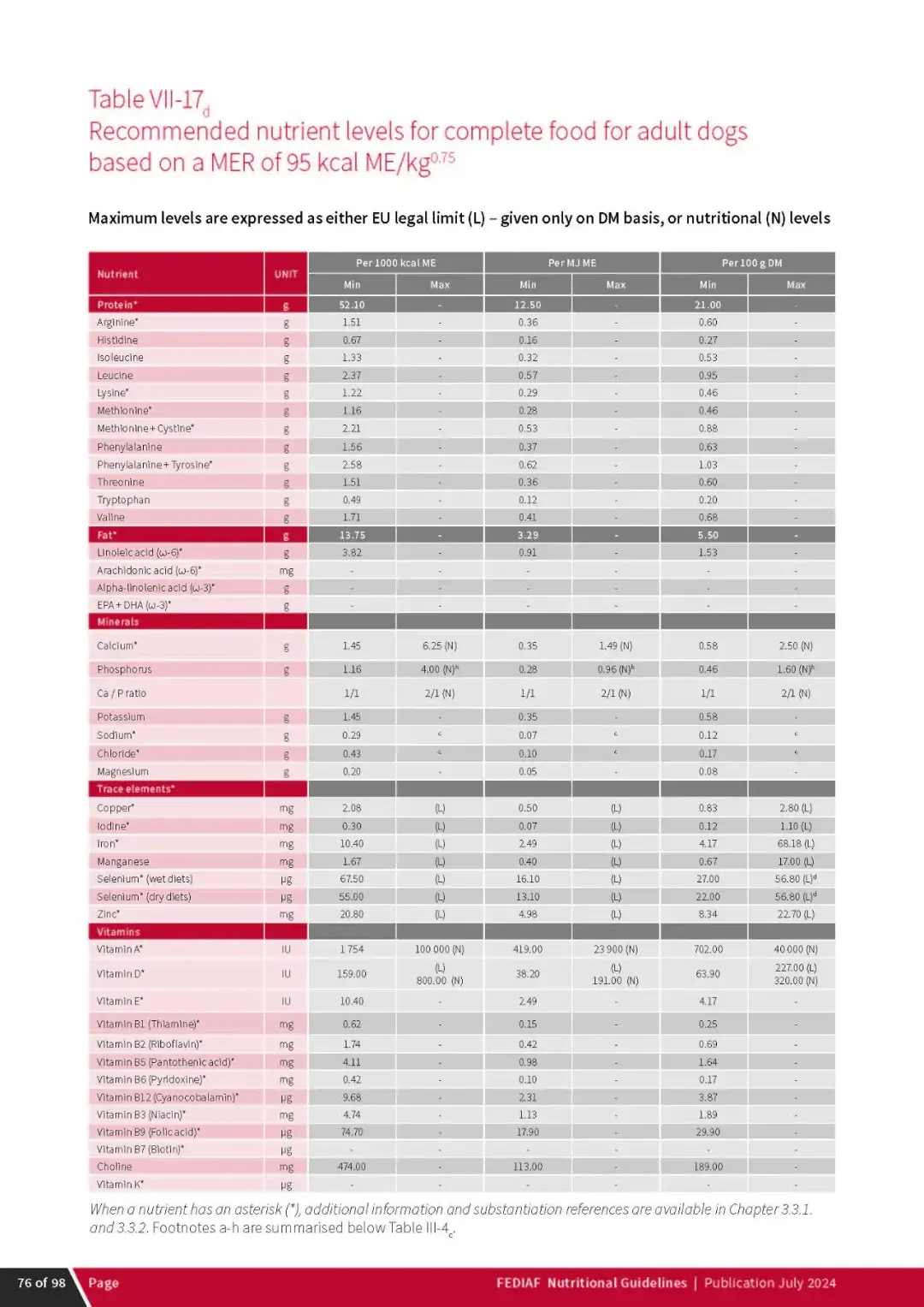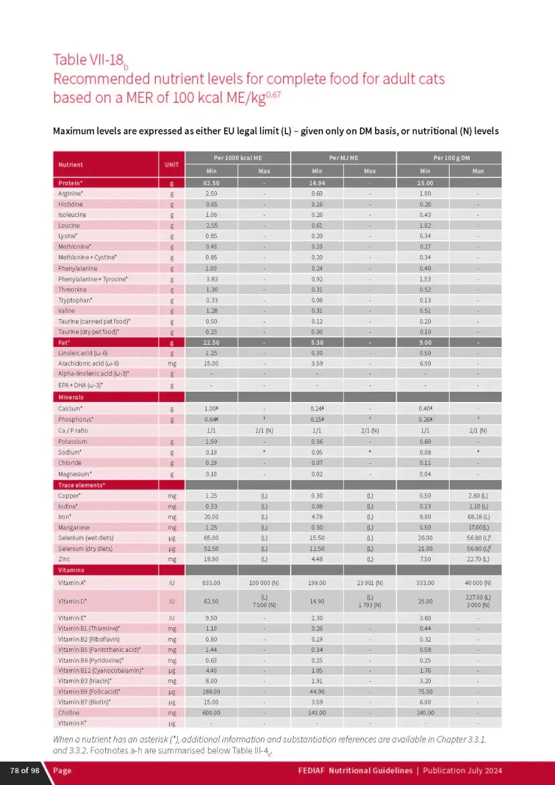 欧盟|2024年FEDIAF宠物犬猫食品营养标准限定值