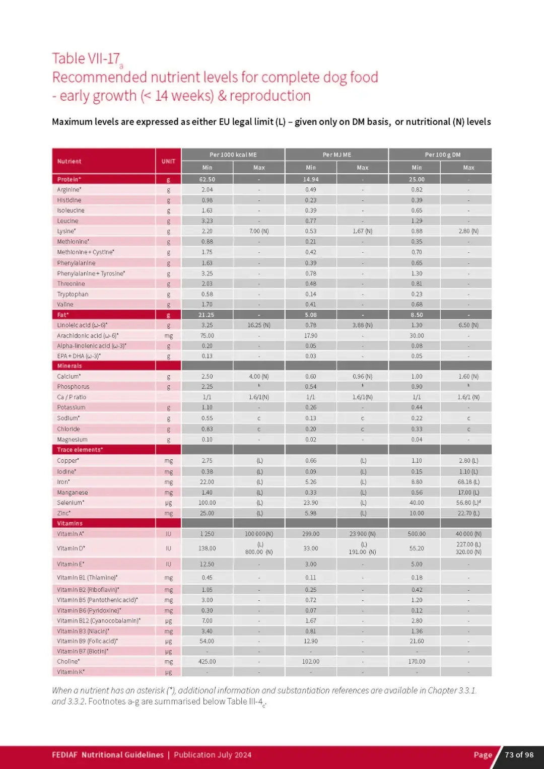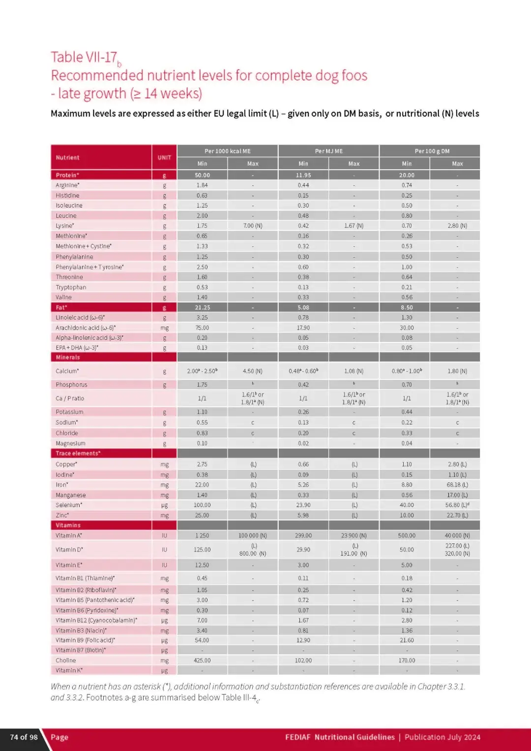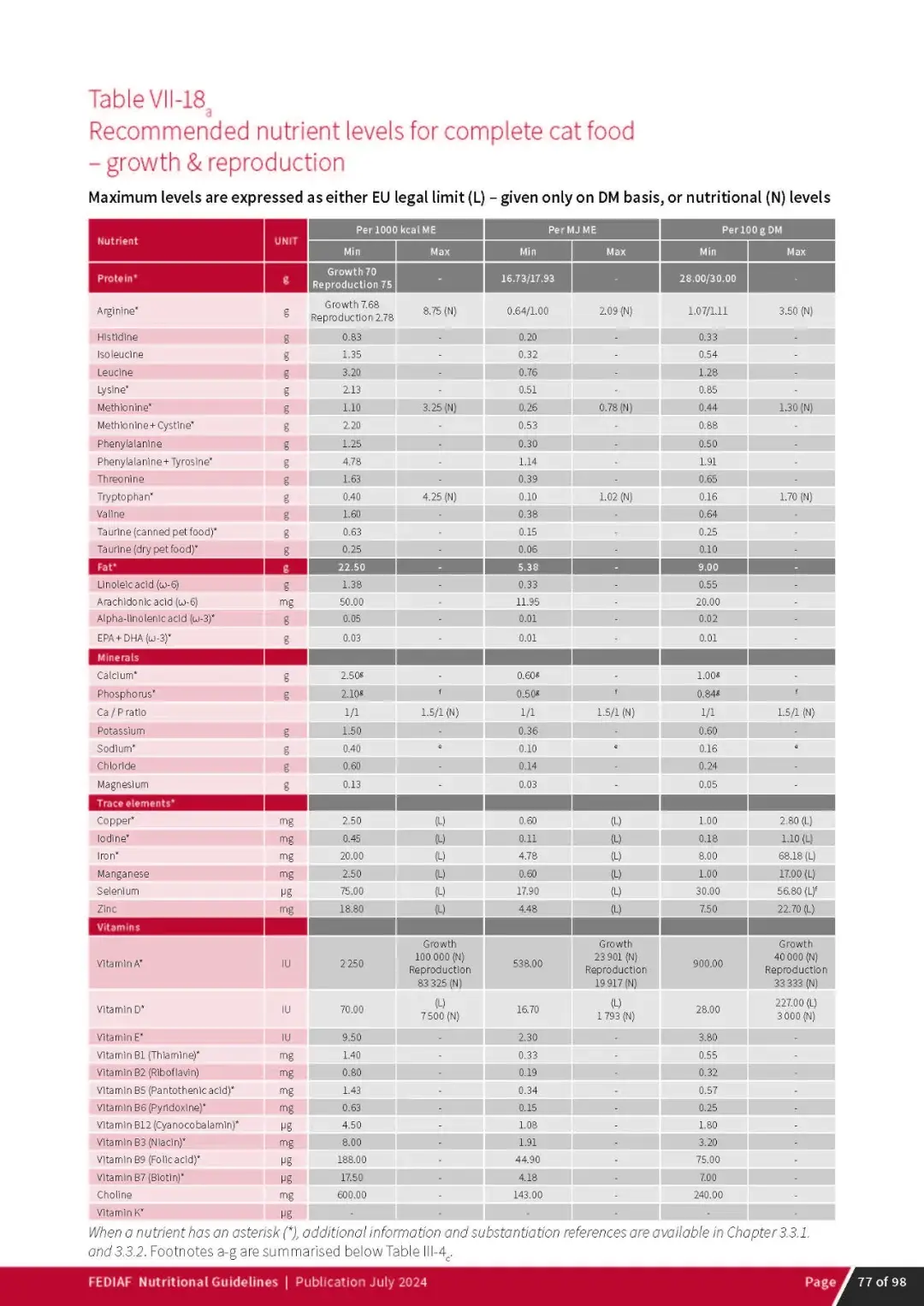 欧盟|2024年FEDIAF宠物犬猫食品营养标准限定值
