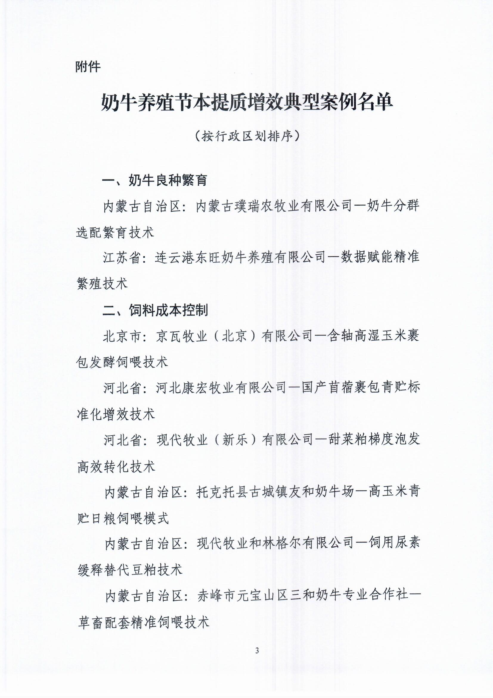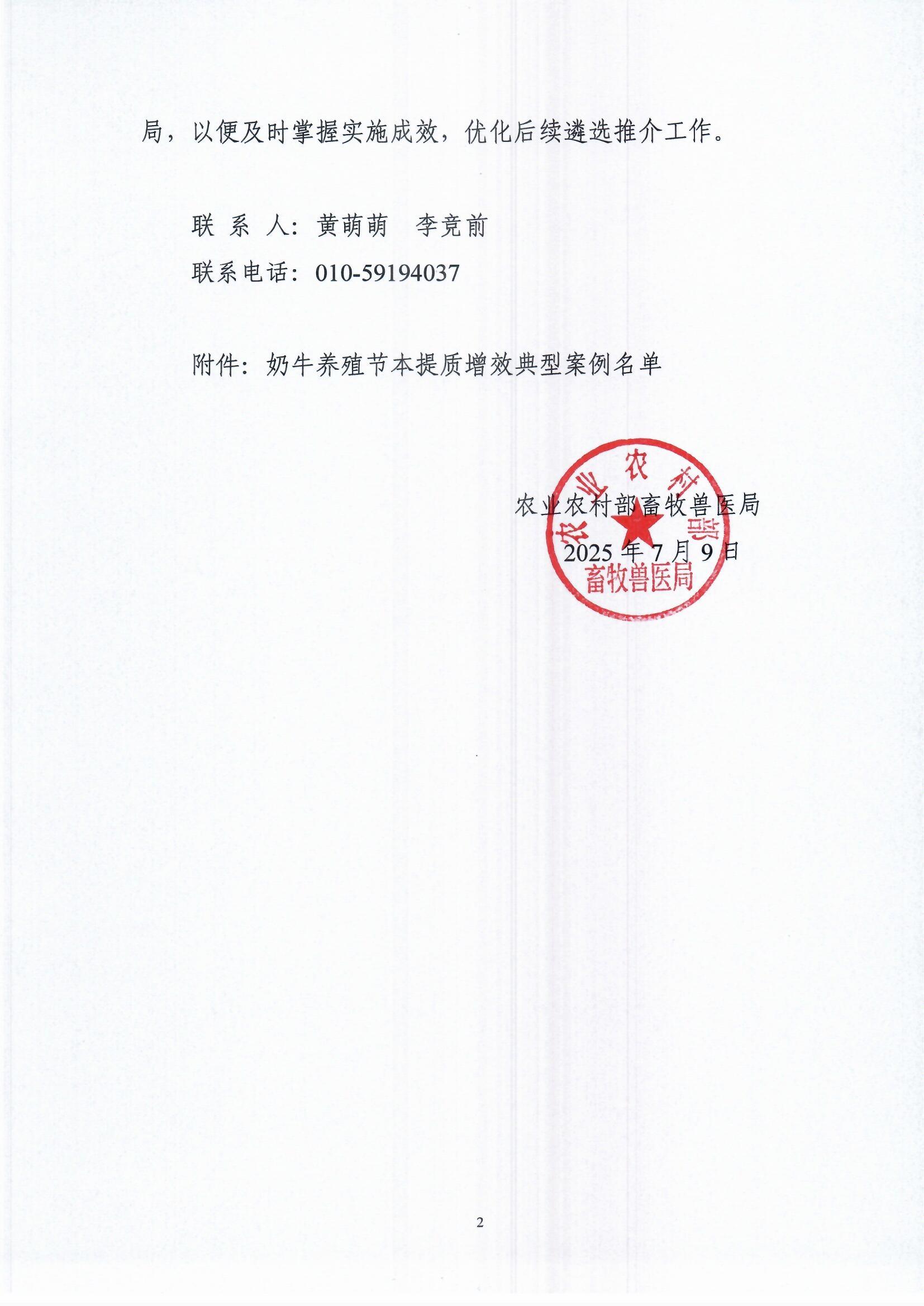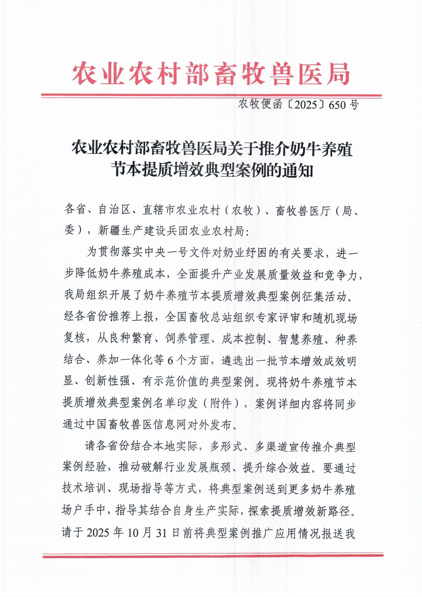农业农村部畜牧兽医局关于推介奶牛养殖节本提质增效典型案例的通知