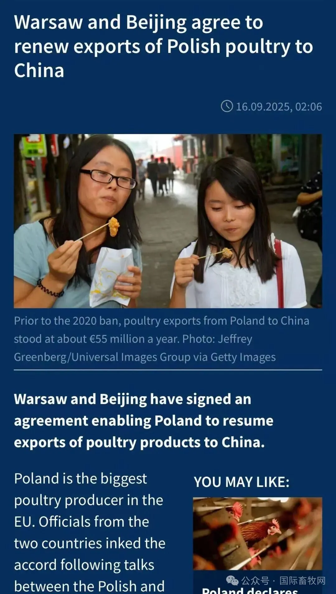据悉,中国都因2020年和2024年9月波兰暴发高致病性禽流感疫情而暂停相关进口。自2014年以来,波兰一直是欧盟最大禽肉生产国,占欧盟禽肉产量的20%以上
