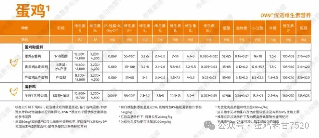 关于蛋鸡(产蛋家禽)的维生素需要量。以NRC标准说明,NRC的《家禽营养需要》是蛋鸡营养领域的权威标准之一,NRC提供的是最低需要量(防止缺乏症出现)。供给量是在实际生产中,为了实现最佳的生产性能、蛋品质量和动物健康, 远高于NRC标准的“推荐量”或“最适量”。